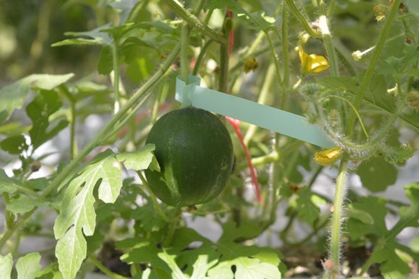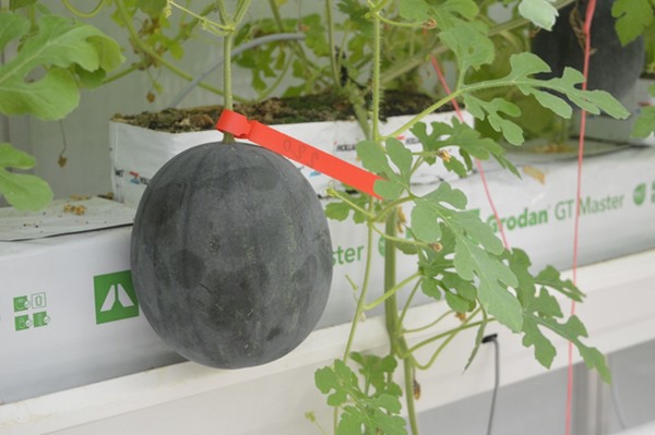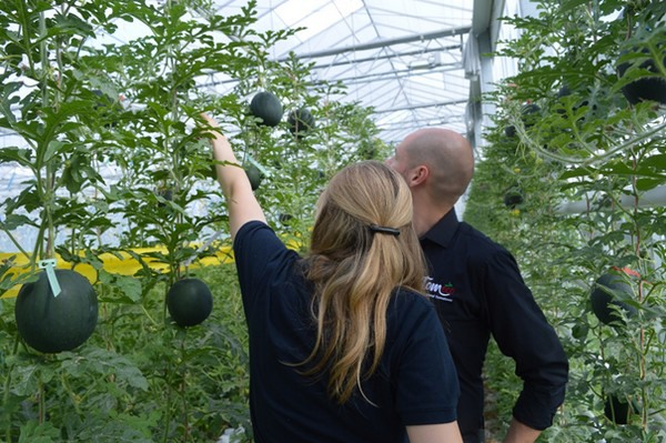 Debido a que el cultivo es nuevo y es difícil estimar la madurez de las frutas, los productores etiquetan las sandías con códigos de color después del cuajado. Rojo significa "cosechar esta semana". También hay números en las etiquetas, que permiten un seguimiento de la cantidad de sandías en el invernadero.