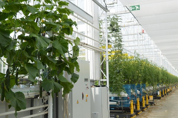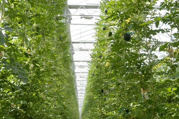 Pepino, sandía y tomate en un solo invernadero.