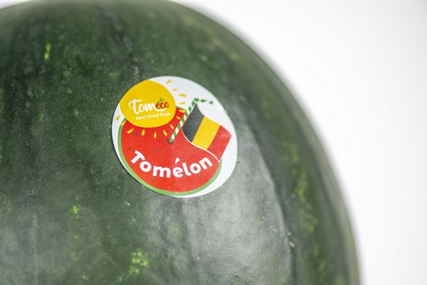 Para enfatizar el origen local de la sandía, la fruta tiene una etiqueta biodegradable con la bandera belga.