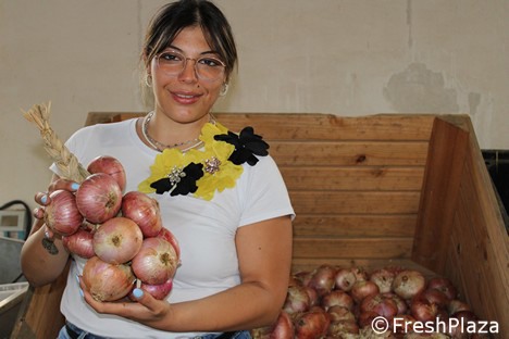 Francesca Barbato muestra la típica trenza realizada con la cebolla Cipolla Ramata di Montoro.
