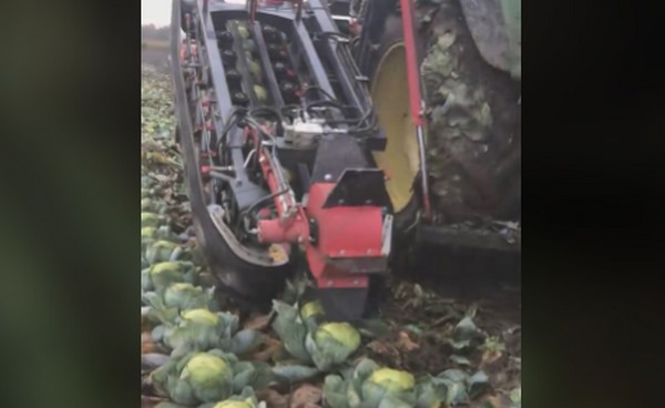 Una de las soluciones es la cosechadora de coles, fabricada por la empresa belga Vanhoucke. La primera cosechadora ya ha llegado al Reino Unido y seis más están en camino. Jonathon ha visto un gran interés por parte de los productores británicos.