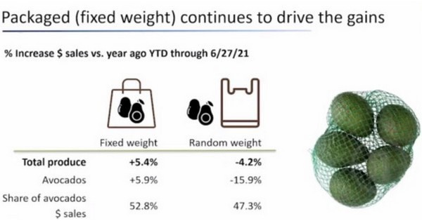 Roerink señala que aunque el aguacate Hass representa la mayor parte del mercado, las nuevas variedades como los aguacates Cocktail y Pinkerton están entrando en la categoría. "Son ventas muy pequeñas, pero están impulsando el crecimiento y es algo que hay que explorar para conseguir nuevas ocasiones de consumo", comparte Roerink. Otras tendencias de consumo incluyen la continua fortaleza de las ventas de peso fijo y el creciente interés por los productos ecológicos.