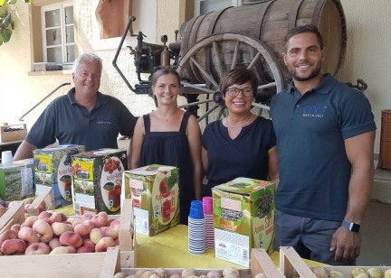 Además de vender su fruta a empresas productoras de jugos, Martin Obst GbR también elabora su propia línea de jugos que se vende a distribuidores regionales de bebidas. Desde hace seis años, la empresa de cultivo también dispone de una máquina expendedora que ofrece diversos productos como pan, queso, pero también berries frescas y jugos las 24 horas del día.