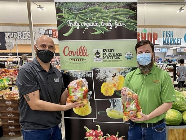 Daniel Spivey (izquierda), comprador de productos agrícolas, y Garland W. Hatfield III (derecha), director de ventas de Covilli Brand Organics.