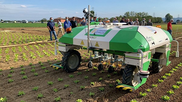 Deshierbe mecánico realizado de forma automática, sin operario, con un margen de error de 1,5 cm. Se llama Dino y es ya una realidad, no un prototipo. Se puede adquirir en Consorzi Agrari d'Italia (CAI) y el miércoles 22 de septiembre se realizó una demostración práctica en Castenaso, en la provincia de Bolonia.