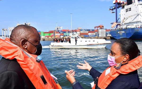 El presidente Cyril Ramaphosa con la CEO de Transnet Portia Derby durante una visita de alto nivel al Puerto de Durban en abril de este año (foto: Servicios Gubernamentales de Comunicación e Información)