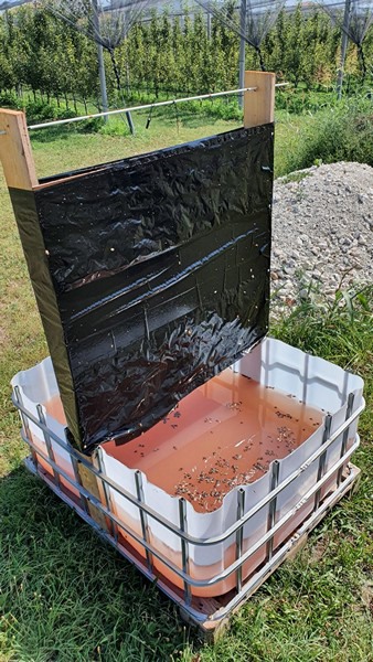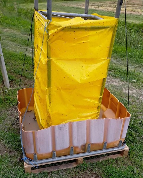 "Empezamos a proponer este tipo de trampas para la captura masiva la primavera pasada", explica el técnico Gianni Gasperoni. "Nosotros, en L'Agrotecnica, sugerimos una lámina amarilla pegajosa para la primavera, cuando los insectos jóvenes son atraídos por colores brillantes, para luego cambiar a las láminas negras para capturar los adultos. De todas formas, también se puede optar por las láminas amarillas para el final del verano, ya que también funciona".