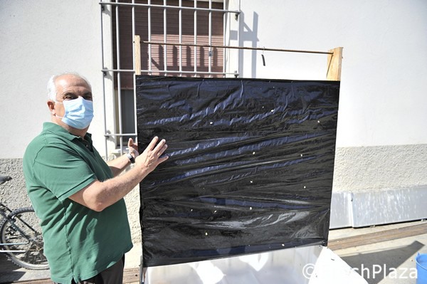 "La parte restante de la trampa puede ser construida por uno mismo. Se pueden usar palés como soporte o construir una estructura con varillas de hierro. Lo importante es que, debajo, haya un recipiente con agua para que las chinches, al caer, se queden bloqueadas y mueran. El tanque de abajo se puede fabricar con cualquier material reciclado, como contenedores o tanques viejos, ya que la efectividad de algo nuevo o reutilizado es la misma".