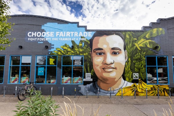 El comercio justo es un enfoque alternativo basado en la asociación en lugar de la explotación, una asociación entre los que producen nuestros alimentos y nosotros que los consumimos. Los productores que aparecen en los murales representan a millones de agricultores del sistema de comercio justo que reciben una compensación justa por sus productos y ayuda para producirlos cumpliendo rigurosas normas de igualdad de género, cambio climático y trabajo infantil. El modelo de comercio justo incluye un fondo que las cooperativas agrícolas reciben además del precio del producto. Los miembros de la cooperativa votan para determinar cómo se gasta el dinero. En 2019, los fondos aportaron más de 228 millones de dólares a las comunidades agrícolas.