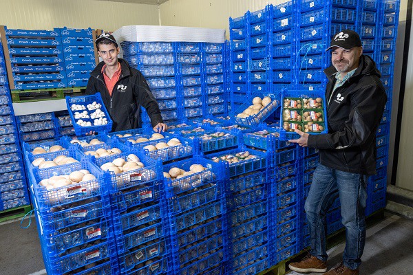 Esto también está conduciendo a cambios en el envasado. Las setas se recogen directamente en envases para el consumidor final. "Tenemos nuestra propia producción, así que podemos responder a las necesidades de los clientes y el mercado. Podemos, por tanto, cambiar el envase casi inmediatamente", dice Mari. Mark añade que la conocida bandeja azul para setas prácticamente ha desaparecido. Las bandejas transparentes de PET o R-PET con tapas o cierres superiores la han reemplazado.