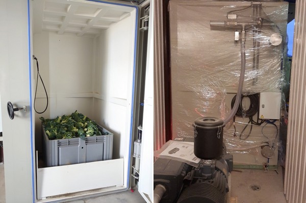 Con la refrigeración por vacío, es posible enfriar hortalizas delicadas en un plazo de 10 a 20 minutos. Van Uden afirma: "La refrigeración por vació es el método de preenfriamiento más rápido y eficiente que existe. Una amplia gama de hortalizas frescas, así como hierbas aromáticas, pueden beneficiarse de la refrigeración por vacío. Las hortalizas de hoja y las hierbas aromáticas son las más fáciles y rápidas de enfriar, pero las hortalizas delicadas y las setas también pueden enfriarse rápido. Hortalizas más compactas como el brócoli tardan más tiempo y es posible que les vaya bien una pulverización adicional con agua. La refrigeración por vacío es perfecta para la mayoría de las hortalizas y hierbas, como ha comprobado Päivi ja Kalle Vuorenmaa en Finlandia".