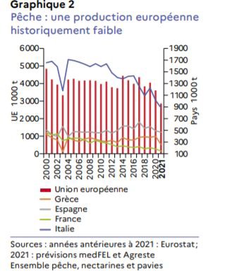 Según el resumen de la situación de las frutas de verano en Francia publicado por la web de estadísticas del Ministerio de Agricultura y Alimentación francés, Agreste, en 2021, las cosechas históricamente bajas ligadas a las heladas de abril han provocado un aumento de los precios al productor respecto a 2020 sin compensar, sin embargo, las caídas de producción. La facturación descendió en el caso de los albaricoques y las cerezas, pero se mantuvo estable para los melocotones-nectarinas.