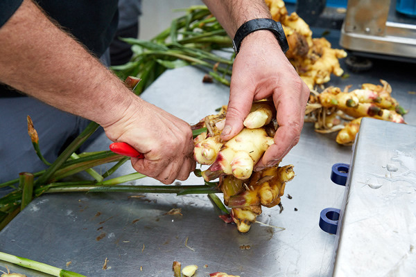 El tubérculo de la planta de jengibre está muy de moda. Los consumidores lo utilizan cada vez más por sus cualidades saludables y gustativas, prestándose para condimentar platos, tanto en fresco como en jarabe o polvo de jengibre. Las catas llevadas a cabo internamente y con la colaboración de los consumidores de Colruyt ya confirman que el jengibre belga se diferencia del producto de Brasil, Perú y China. Colruyt Group se enorgullece de comercializar este producto de buen sabor y ultrafresco de cultivo belga.
