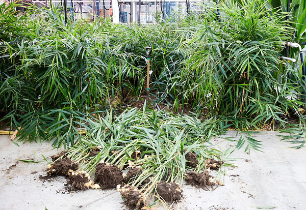 El jengibre se cultiva en un invernadero en el Centro de Pruebas para el Cultivo de Hortalizas y bajo un túnel de plástico sin calefacción y en un invernadero solar de dos productores de REO Veiling. El jengibre se planta a mediados de mayo y se cosecha en otoño.