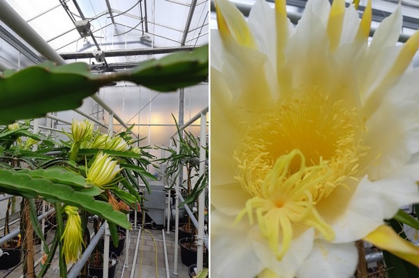 Fotos de la prueba con el cultivo de pithaya en el invernadero de la universidad holandesa de Wageningen