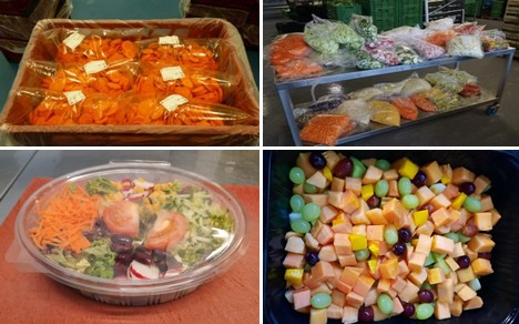 Algunos ejemplos de la amplia gama de productos de IV gama: rodajas de zanahoria, macedonia de frutas y ensalada.