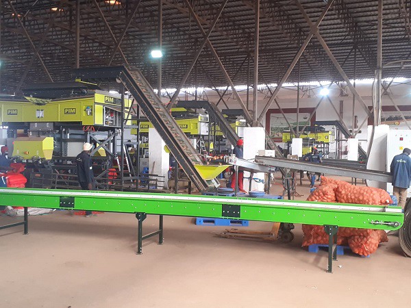 Una vez cosechadas, la empresa envasa las patatas en sacos de 50 kilos y las refrigera. "La velocidad y la capacidad de la línea de envasado son fundamentales. Como hace tanto calor, las patatas cosechadas se tienen que meter en almacenes frigoríficos lo antes posible". Para su distribución a los mercados locales, las patatas se reenvasan en sacos de 25 kilos una vez salidas de las cámaras.