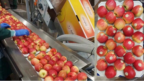 Preparación de las manzanas italianas Ambrosia™ para el transporte a Asia