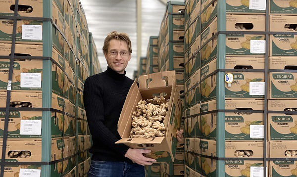 "La demanda de jengibre suele crecer cuando bajan las temperaturas", dice Tygho Kampschöer, propietario de Fruvexco. Esta empresa holandesa se centra en la importación de exóticos, en particular jengibre. Esa demanda se eleva más todavía en torno a Navidad, cuando se hacen muchas promociones de jengibre. Este producto exótico también se utiliza en muchos platos navideños. "La temporada de Navidad es importante para nosotros".