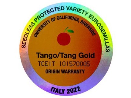 (Foto: Etiquetas para las mandarinas Tang Gold de Italia de 2022)