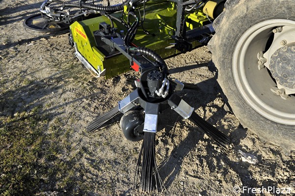 Es el momento de la poda para diferentes tipos de plantas y en diferentes zonas de producción. La empresa italiana Calderoni ofrece un accesorio para aplicar a su trituradora de malezas. Se trata de un rastrillo hilerador de ramas de poda. En la práctica, un gran cepillo, accionado hidráulicamente, recoge los restos de poda para que la trituradora pueda hacer su trabajo de la mejor manera posible.