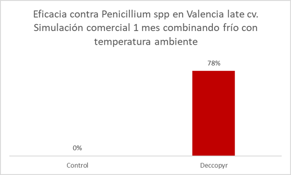 "Con el fin de afrontar con la mejor de las garantías está segunda parte de la campaña caracterizada por las exportaciones a países lejanos y los periodos de guarda, en Decco Ibérica desarrollamos el Deccopyr 400 SC. Se trata de un fungicida clasificado por la EPA como de bajo riesgo con una efectividad muy acusada contra los principales hongos que afectan en postcosecha a los cítricos".