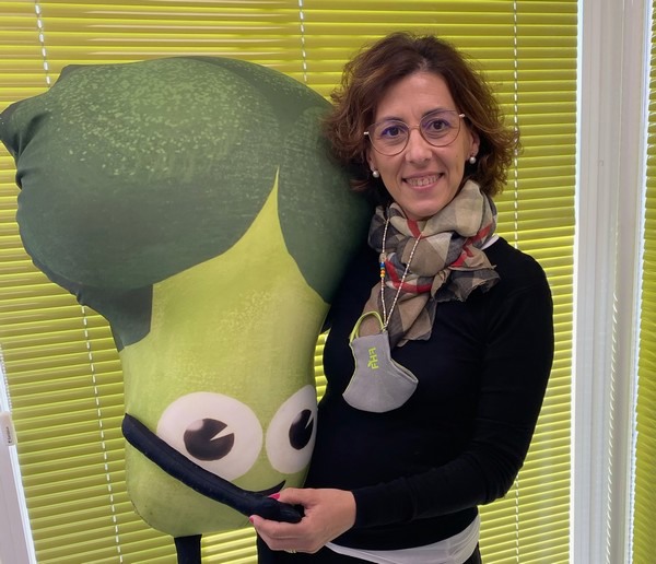 Sara Oliver con la mascota Brocolín, de la asociación +brócoli.