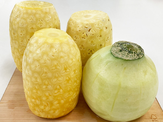 Ryo empieza contando la historia de cómo se desarrollaron las peladoras de piña. "A menudo, las piñas listas para comer se venden en pequeños envases sellados en los supermercados. Aunque resultan mucho más caras que la fruta fresca sin procesar, los consumidores las compran porque las piñas no son fáciles de pelar en casa. Estos envases listos para el consumo suelen procesarse en fábricas y luego se envían a las tiendas. El problema es que la piña es bastante perecedera. Cuando se mantiene en la estantería de la tienda durante mucho tiempo, o cuando la temperatura ambiente cambia durante el procesamiento o el transporte, la calidad de las frutas cortadas se deteriora y las frutas se pudren fácilmente. Esto no solo provoca el desperdicio de alimentos en la tienda, sino que también puede dar lugar a quejas de los consumidores. Como pioneros en el campo de las peladoras, empezamos a investigar cómo podíamos ofrecer una solución más fácil para que los consumidores pudieran comer fácilmente piña recién pelada a un precio más bajo. Por eso lanzamos una serie de peladoras de piña hace 3 años".
