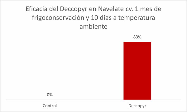 No podemos olvidar los tratamientos antifúngicos para cítricos que ayudarán a proteger durante la conservación de las Lanelate y Navelate del ataque hongos patógenos. La solución propuesta por Decco es el Deccopyr SC, un producto que presenta muchas ventajas frente a otros fungicidas para cítricos, entre las que se encuentran las siguientes: