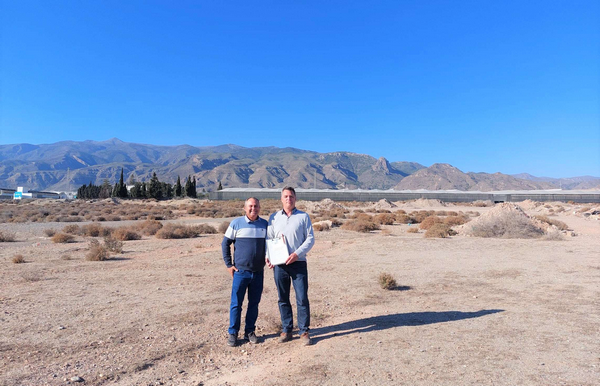 Javier Checa, responsable de fincas, y Wybe van der Schaar, responsable de mejora para España, en la parcela recientemente adquirida en la zona de El Ejido, Almería.