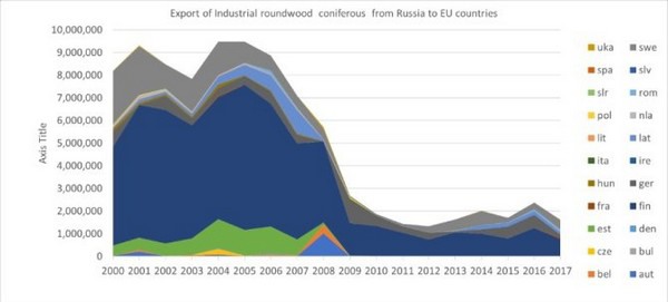 Finlandia y Suecia solían importar mucha de esta madera sin procesar rusa, por lo que fueron los más afectados por las tarifas comerciales posteriores a 2008. Esos volúmenes han disminuido considerablemente, pero estos dos países siguen importando volúmenes razonables. Por tanto, la actual prohibición comercial les afectará en cierta medida.