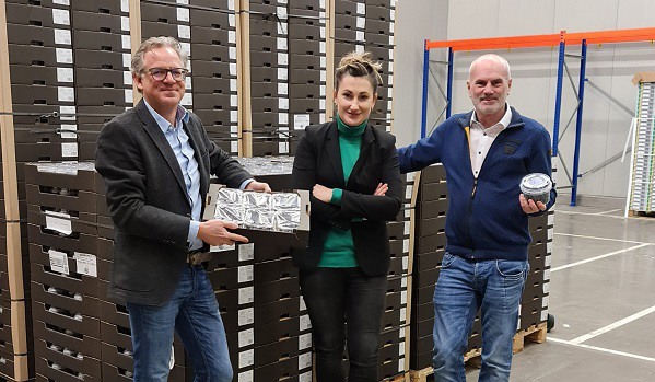 Timo Elbers y Asia Wasilewska, de Hortiblue, junto a Henri Veltmans, de Case Packing Systems