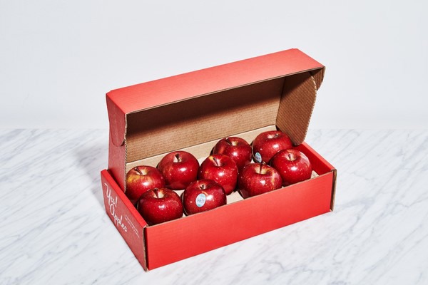 Las nuevas cajas de cartón de Yes! Apples son totalmente reciclables.
