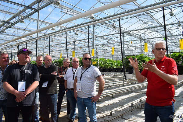 Wil mostró a los visitantes el complejo de invernaderos: 6,5 hectáreas para fresas de primavera y otoño, 8 hectáreas de túneles para fresas de verano y 8 hectáreas de moras. El respeto por la naturaleza es fundamental para Beekers Berries, que hace uso de abejas y abejorros para la polinización y de enemigos naturales para combatir las plagas.