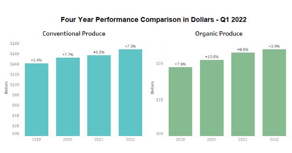 Las ventas totales de frutas y hortalizas ecológicas en el primer trimestre de 2022 aumentaron un 4 por ciento con respecto al mismo período del año pasado, superando los 2.300 millones de dólares, según el Informe de desempeño de frutas y hortalizas ecológicas del primer trimestre de 2022 publicado exclusivamente por Organic Produce Network y Category Partners.