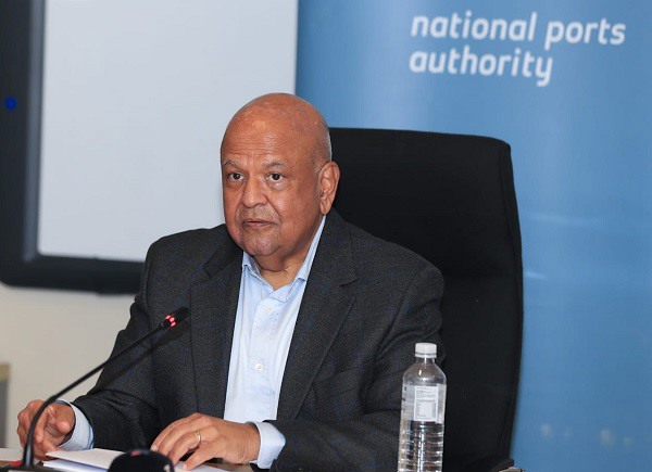 Min Gordhan señala que las autoridades tendrían que encontrar la forma de garantizar que los residuos arrastrados al puerto de Durban durante las inundaciones no paralizaran el funcionamiento del puerto.