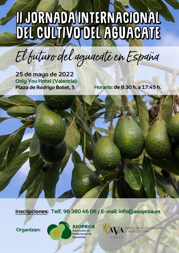 Valencia será la capital del aguacate el próximo miércoles 25 de mayo con motivo de la celebración de la II Jornada Internacional del Cultivo del Aguacate, organizada por la Asociación de Productores de Aguacates (ASOPROA) y la Asociación Valenciana de Agricultores (AVA-ASAJA), bajo el título ‘El futuro del aguacate en España’.