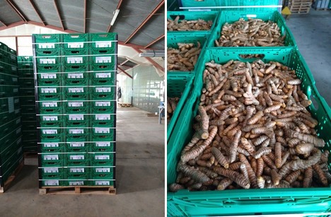 Tanto el jengibre como la cúrcuma se ofrecen principalmente sueltos en cajas de 2 kg.