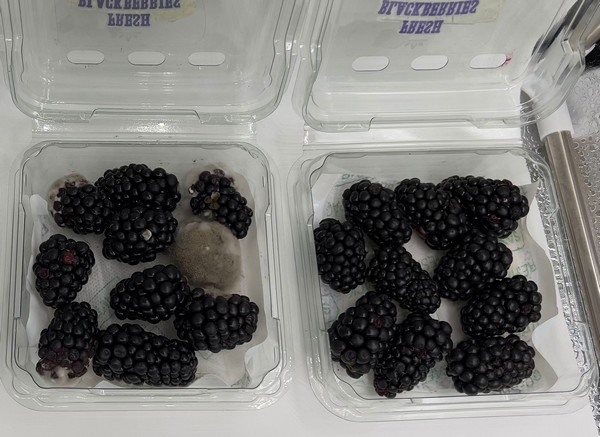 En las pruebas preliminares, SAVRpak ha demostrado extender la vida útil de las uchuvas más de 10 días, más de 7 días la de las moras, más de 4-5 días la de las frambuesas y más de 4 días la de las fresas. De manera similar, en una prueba de laboratorio de 2021 con la Universidad de California en Davis, la lechuga romana almacenada con SAVRpak tuvo una condensación y una humedad considerablemente menores en las bolsas, así como menos empapamiento de agua, deterioro y marchitamiento en comparación con las muestras de control. En los próximos meses, SAVRpak empezará las pruebas en pepinos con Agrizar.