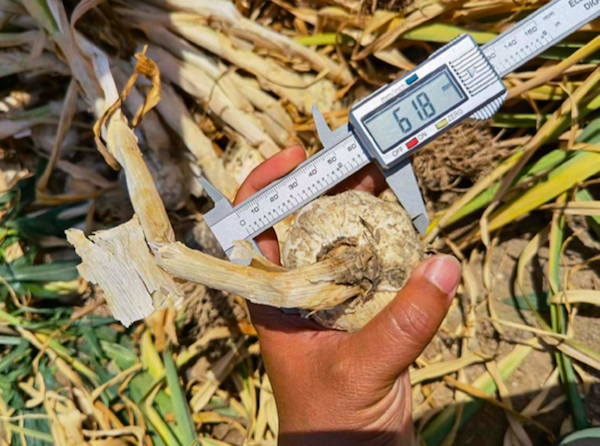 Después de que el ajo se haya secado, se espera que el tamaño alcance al menos 60 mm.