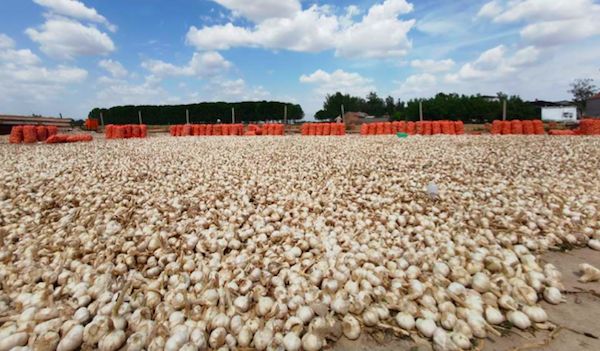 La cosecha de ajos chinos de este año está a punto de terminar. Ha sido una cosecha abundante porque las condiciones meteorológicas han sido excelentes. El tamaño del ajo es grande, y su color y cáscara son geniales. El volumen global de las exportaciones es de alrededor de 4,5 millones de toneladas, más o menos el mismo que el año pasado. El volumen de producción por hectárea no aumentó mucho este año.