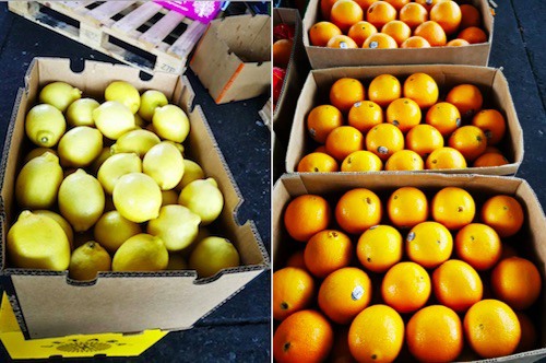 Limones sudafricanos (izquierda) y naranjas dulces estadounidenses (derecha)