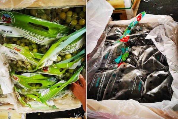 La mayoría de las uvas importadas provenían de Chile, incluyendo las uvas rojas, verdes y negras. También hubo un menor volumen de suministro de uvas rojas sin semillas y uvas verdes Autumn Crisp de Australia. Un comerciante menciona que el movimiento del producto fue mediocre la semana pasada. Otra importación común son los cítricos, incluyendo naranjas, pomelos y limones. Las naranjas dulces de los Estados Unidos se vendieron mejor que las naranjas egipcias, según un comerciante, porque estas naranjas entran en el mercado chino alrededor del Festival de Primavera (1 de febrero de 2022) y su temporada de suministro continúa hasta julio. Además, saben dulces. Un comerciante señaló que solo estas naranjas se vendían rápidamente en ese momento. El precio al por menor de las naranjas egipcias rondaba los 160 yuanes (23,89 USD) por caja. El movimiento del producto fue normal.