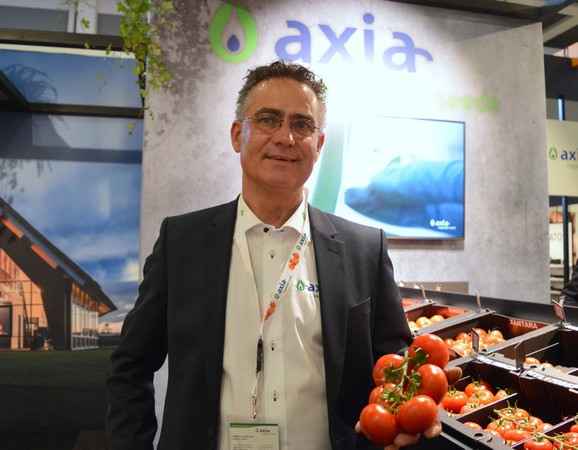 "Mira, es ligeramente más plano y tiene un color rojo oscuro, lo que lo hace diferente. Por tanto, este tomate tiene el aspecto y la sensación de ser una línea de tomates típicamente premium de venta al público. En los supermercados, a menudo se encuentran tomates en rama de tamaño mediano a grande", señala. Axia ofrece la variedad tanto para el cultivo iluminado como para el no iluminado. William ve oportunidades, entre otras, en los supermercados alemanes. "Allí la gente está dispuesta a pagar más por tomates de buen sabor".