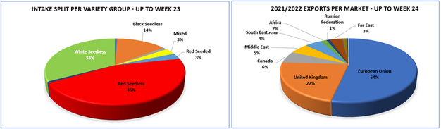 South African Table Grape Industry (SATI) ha dado a conocer las cifras finales de la temporada 2021/2022 de uva de mesa, que ha concluido oficialmente, con unas entradas que alcanzan un total de 77,7 millones de cajas (de 4,5 kg). Esto supone un aumento del 4% en comparación con la temporada 2020/2021.