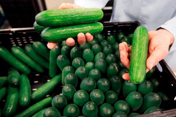 Los empleados de la empresa de cultivo holandesa Wijnen Square Crops están envasando estos días una nueva variedad de pepino: Midi. El 'medio' pepino pesa unos 180 gramos y es, según la empresa productora, "la solución contra el desperdicio de alimentos y la plastificación".