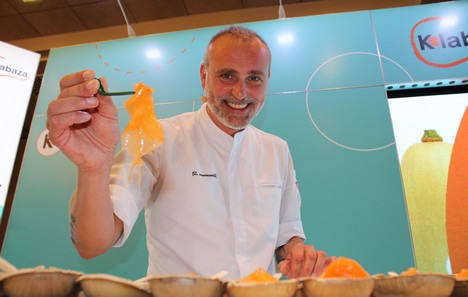 Calabaza como una patata frita, encurtida, marinada, en gazpacho, en crudo… Más de 10 técnicas culinarias ha descubierto en un showcooking en directo el prestigioso chef Rodrigo de la Calle:.