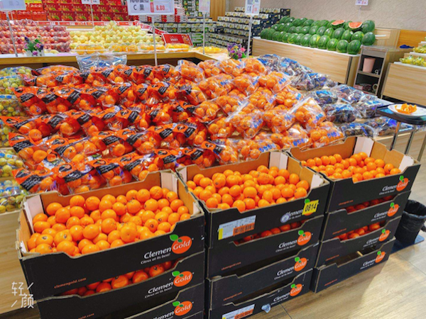 Acerca de las condiciones del mercado de la fruta, Han explica: "Al final, las condiciones de este año fueron más o menos las mismas que el año pasado. Nuestros productos más vendidos incluyen azufaifo de invierno, sandías, uvas Shine Muscat, mangos Keitt y melocotones. El contenido de azúcar de las uvas Shine Muscat es bastante bajo en este momento porque las zonas de producción en Yunnan sufrieron varios días de lluvia. En consecuencia, su precio bajó. El volumen actual de suministro del mercado es limitado".