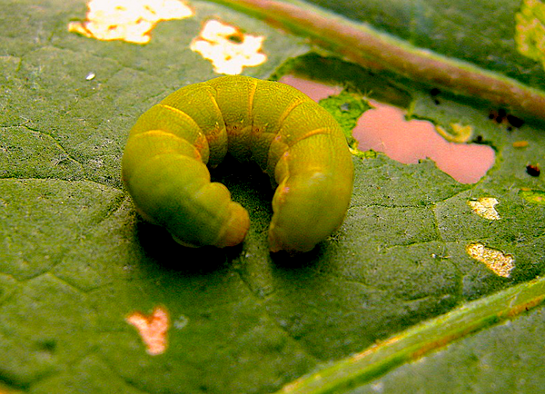 Oruga del pimiento (Spodoptera exigua), también conocida como “rosquilla verde”.