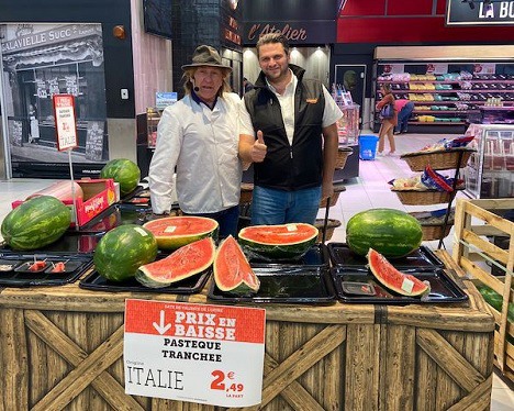 Aunque la oferta de Marruecos y España predomina en los estantes de los mayoristas y la gran distribución francesa, la empresa Kölla también ofrece a sus clientes sandías procedentes de Italia. "Se trata de una pequeña producción establecida a unos treinta kilómetros al este de Nápoles. Es una sandía muy interesante para el mercado francés porque tiene un alto contenido de azúcar (12° Brix que se alcanzan al principio de la temporada, a finales de junio), una bonita coloración y una carne relativamente firme", explica Stéphane Belley, director comercial en el mercado francés de la empresa Kölla, comercializadora de productos mediterráneos.